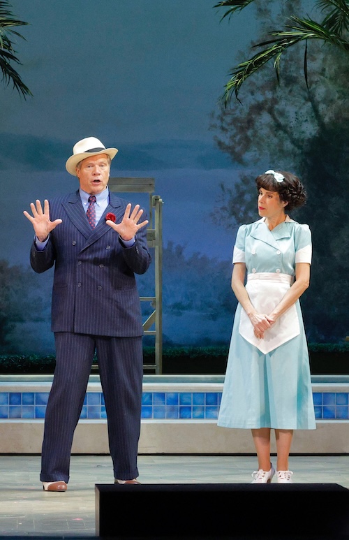 Lyric has dispensed with the elegant Monte Carlo production for an Erhard Rom staging from San Francisco Opera that transplants the action to a mid-20th-century American country club. Scenes take place in the club’s locker rooms, restaurant, library, at a pool and during an exercise class. (While it made sense for the sisters to be upset by strange men showing up in their home, why would they be outraged at men appearing in a public place?)