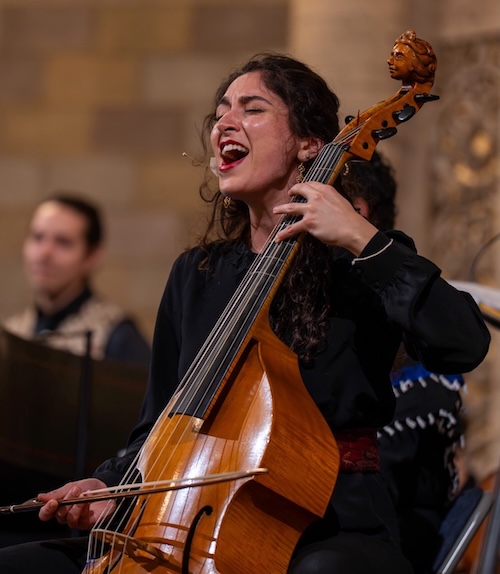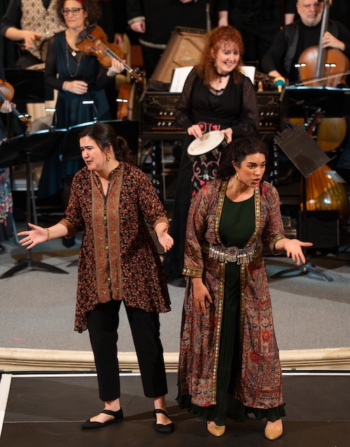 Soprano Sophia Burgos lofted the sultry melismas of a Sephardic lullaby, effortlessly shifting between her throaty low register and delicate high tessitura, and was spirited in the company procession (“Santa Maria, Strela do Dia”) that closed the first half. Soprano Lucine Musaelian stepped out from the chorus to provide an evening highlight accompanying herself on viola da gamba in the Armenian chant “Havun-Havun,” singing with gravitas and glowing tone to mesmerizing effect.