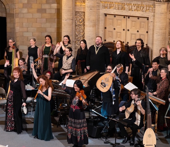 The evening closed with “La Komida la Manyana” (The Morning Meal), a lively Sephardic-Ladino folk song that found Sorrell and Apollo’s Fire in their trademark high spirits, literally dancing down the aisles. At such times, Apollo’s Fire can precariously walk a thin line between joie de vivre and theatrical shtick. But given the current tensions in the Middle East, a defiantly over-the-top celebration felt like welcome balm Saturday night.